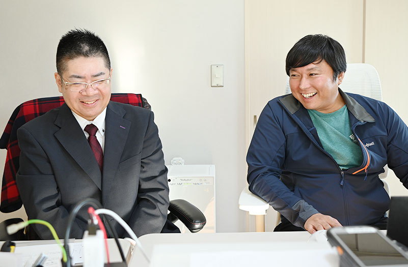 商売をやっていく上で、私も(測量という)サービスを売っているので、測量機の機能も重要ですが最終的にはお客様の思いや声を受け取って還すサービスを心掛けています。(担当営業の)井藤さんと測量の器械を通してお付き合いしていく中で測量業界に貢献するということについて勉強させていただき、それがあったからお付き合いさせてもらっています。